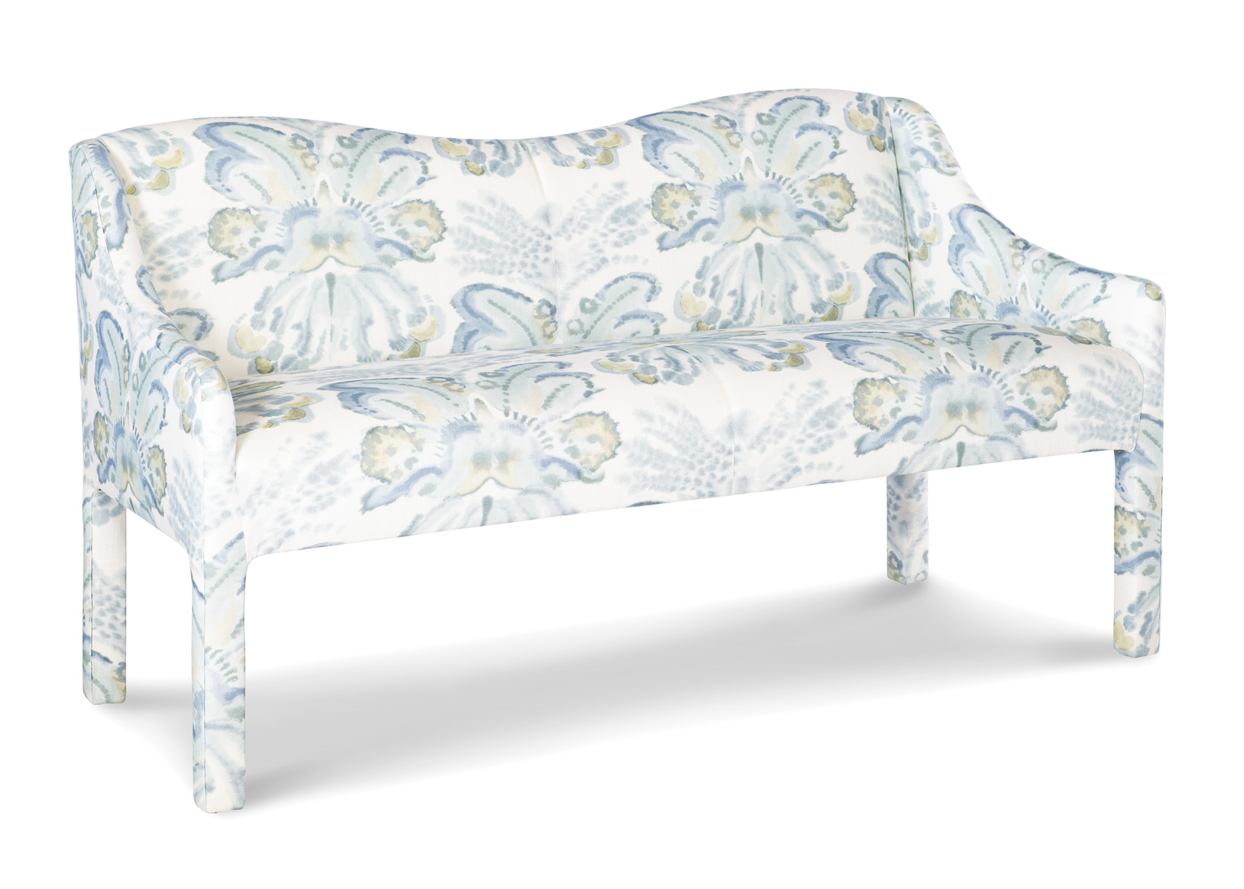 The Eloise Bench captures effortless sophistication through its graceful silhouette and refined simplicity. With its gently scalloped back and softly contoured arms, Eloise offers a fluid, organic shape that feels both sculptural and inviting. Perfect for entryways, dining spaces, or at the foot of a bed, this versatile piece balances form and function with ease. The seamless upholstery and subtle curves highlight expert craftsmanship, making Eloise as beautiful to look at as it is comfortable to sit on.