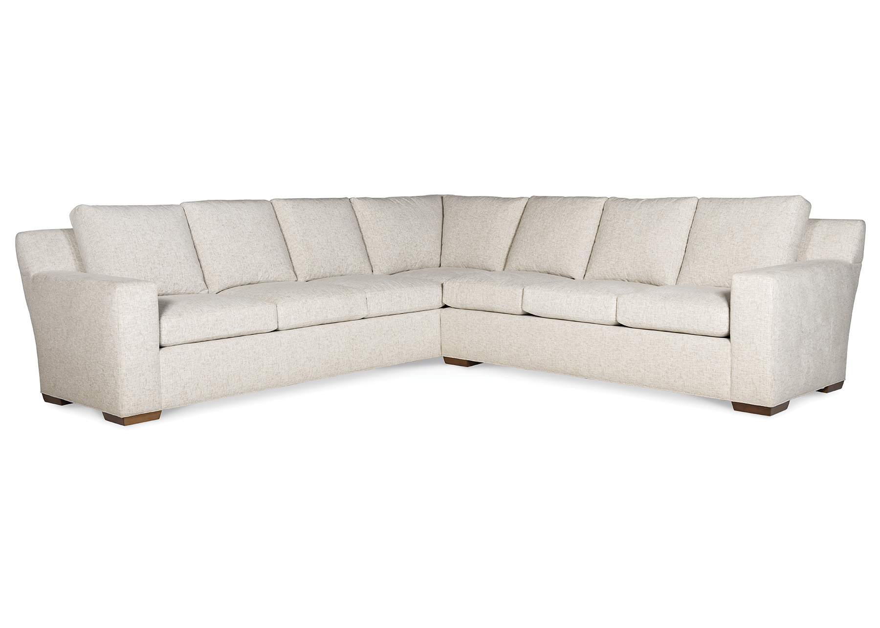 Ollie is a transitional sectional featuring wide track arms and wide block legs. Plush, loose seat and back cushions create added comfort and support.