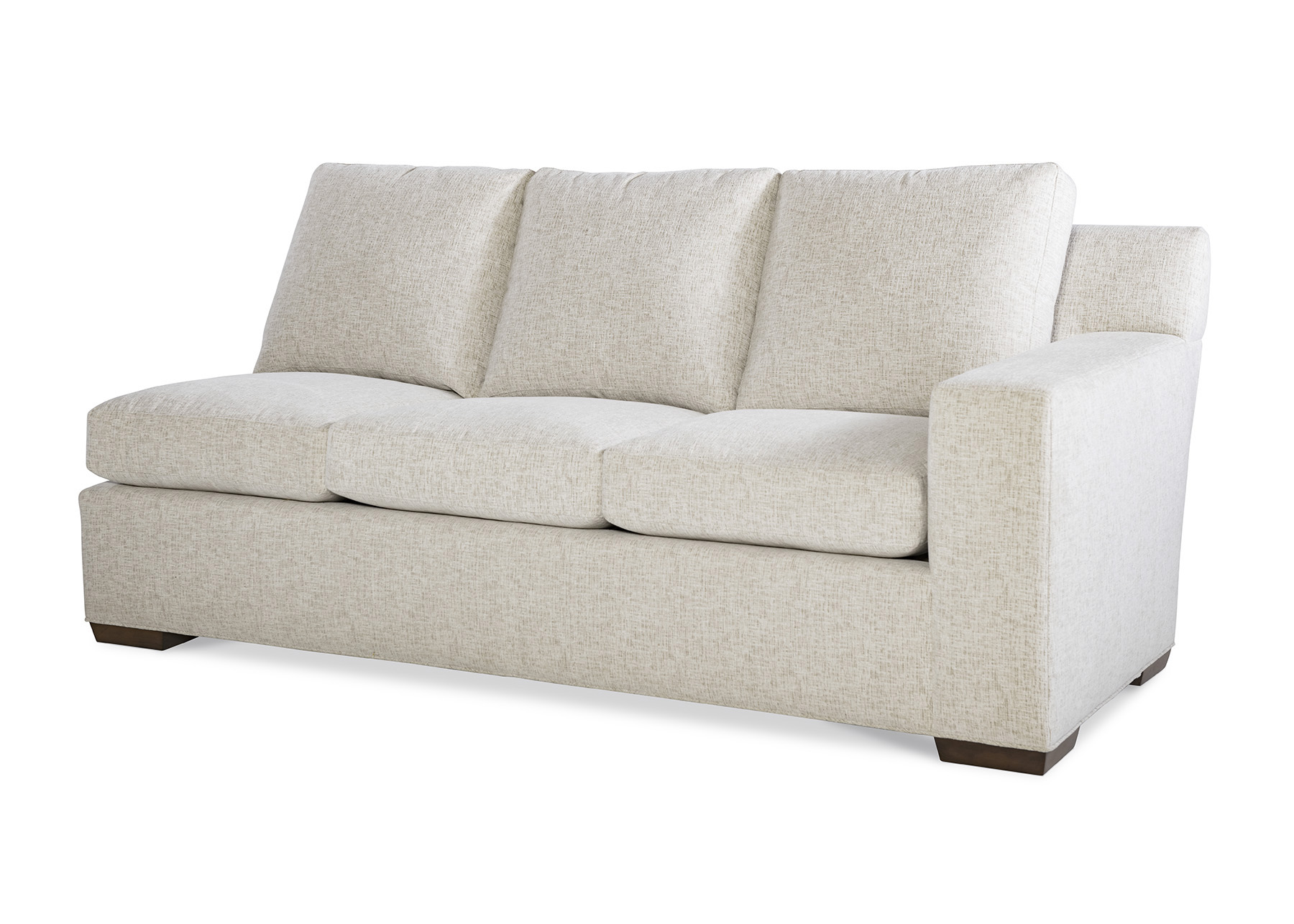 Ollie is a transitional sectional featuring wide track arms and wide block legs. Plush, loose seat and back cushions create added comfort and support.