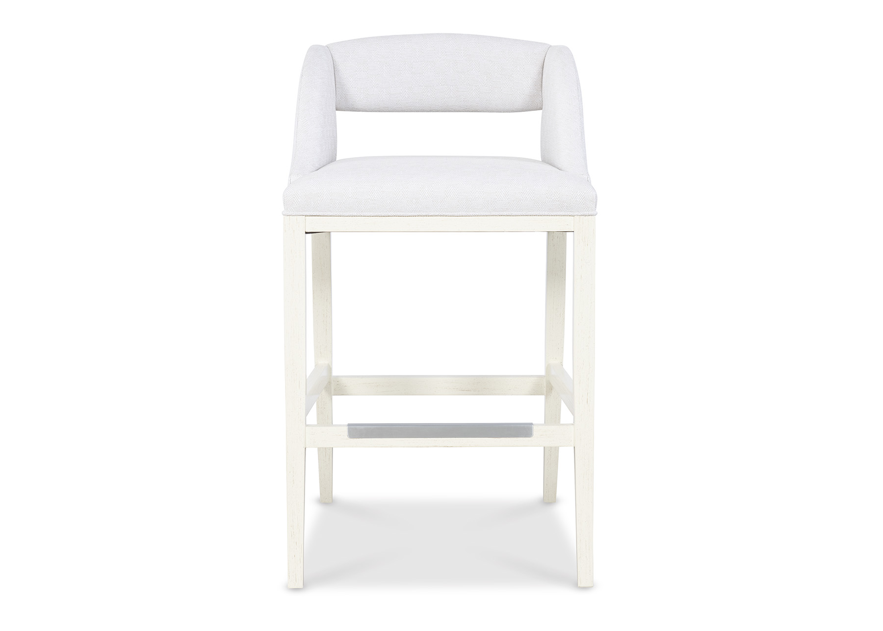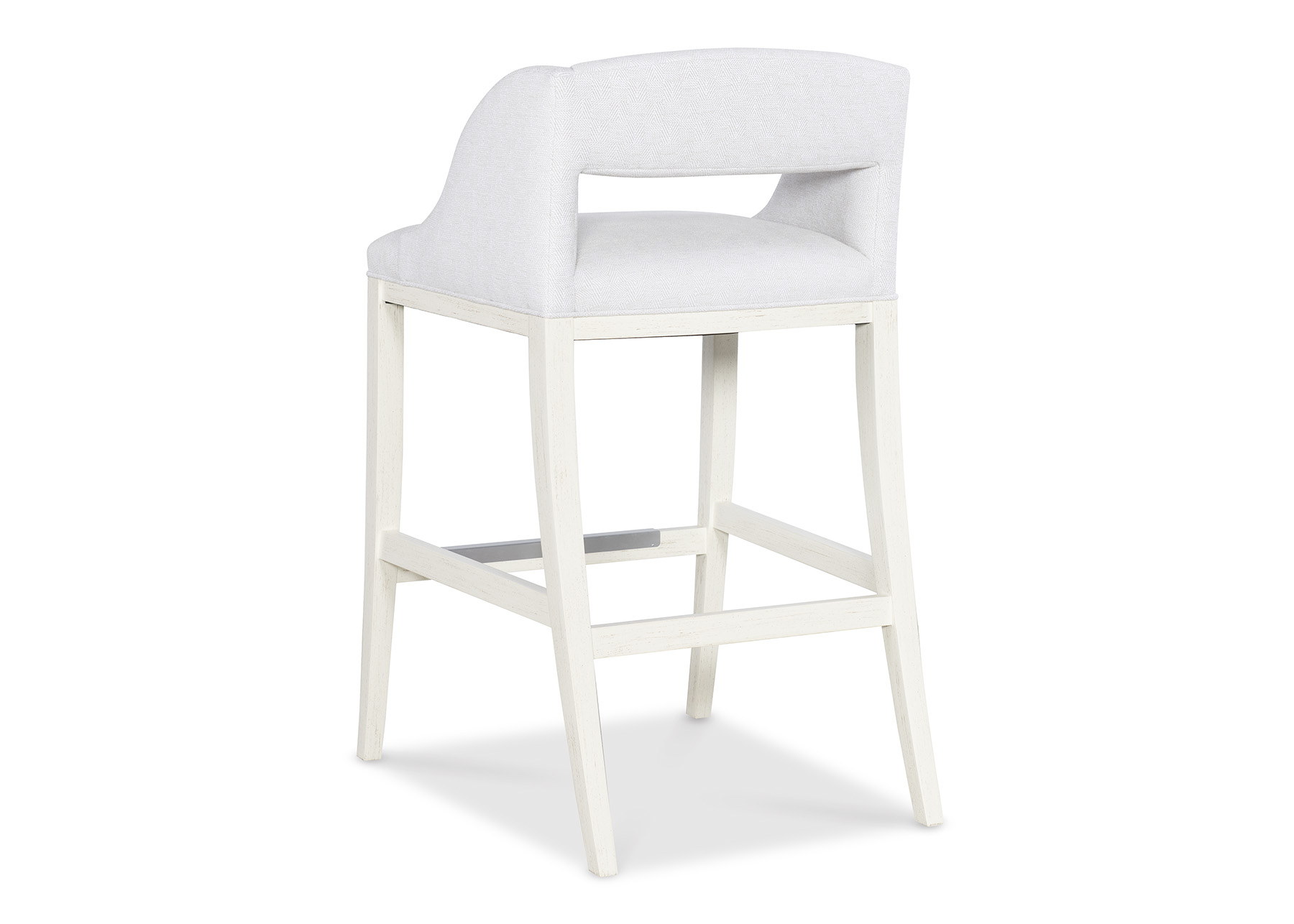 Transitional, lower-slung cut out back bar stool.