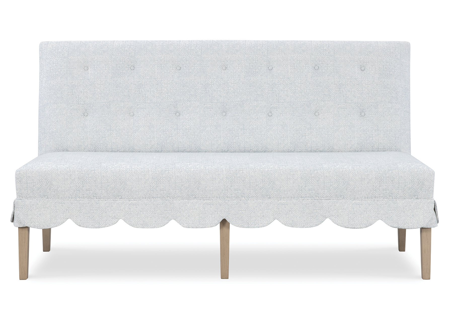 Gigi Banquette adds life to any kitchen, dining room or space where intimate gatherings are welcomed. The back can be button tufted or plain, while different skirt options make this truly customizable. Choose from Box Pleat, Dressmaker, Waterfall or Scalloped.