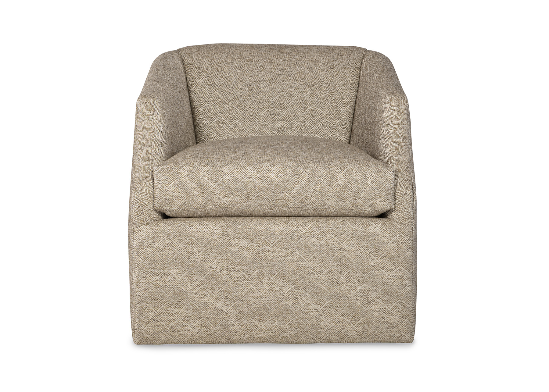 This swivel chair features a clean, sculpted silhouette with gently sloped arms and a tailored seat. Its subtle pattern and smooth motion make it a stylish and comfortable choice for any room.
