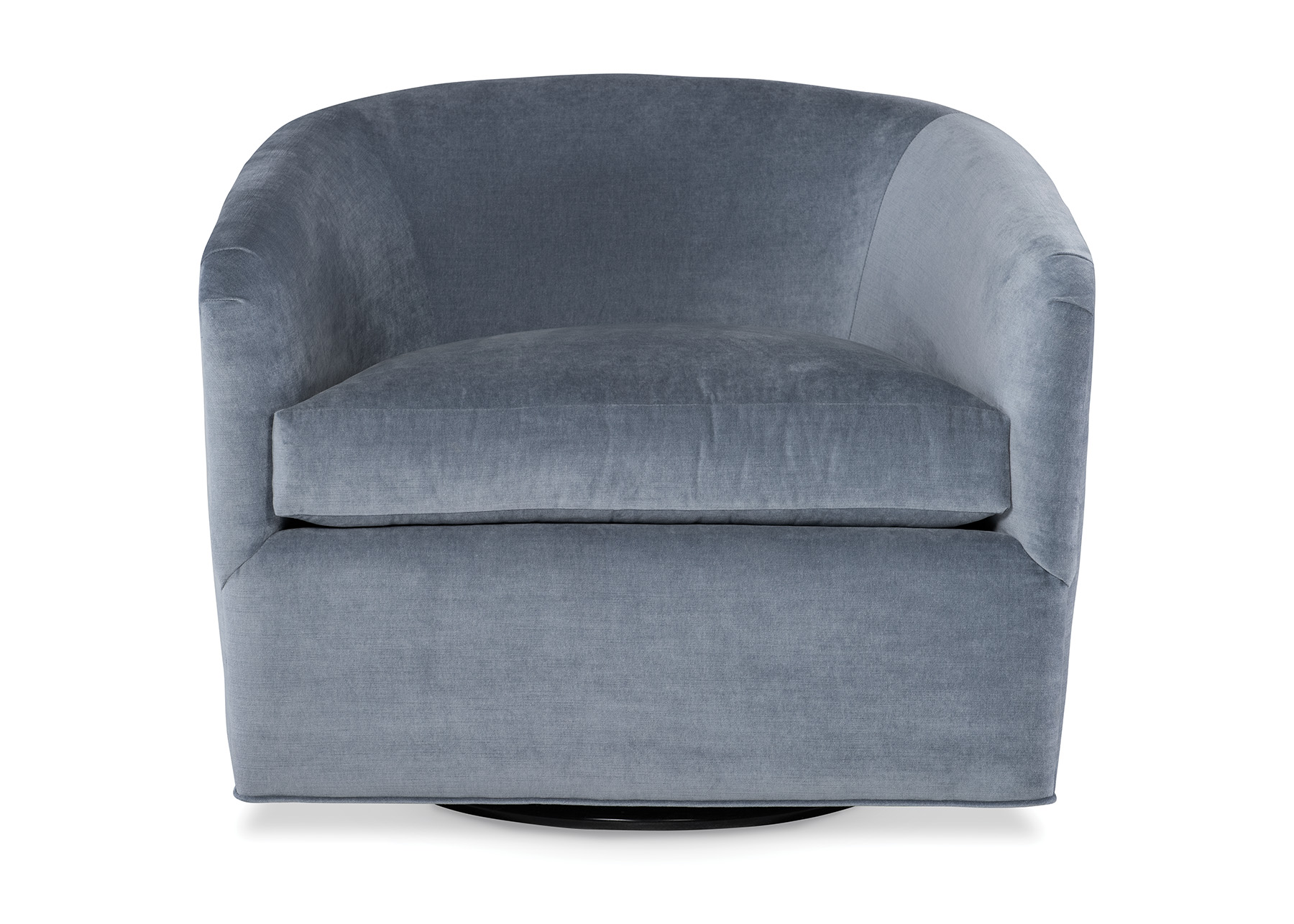 The Delano Swivel Chair combines sophisticated style with exceptional comfort. Its smooth barrel-back silhouette wraps you in support, offering a perfect balance between form and function. With extra wide seating, this chair invites relaxation while maintaining a refined, tailored look.