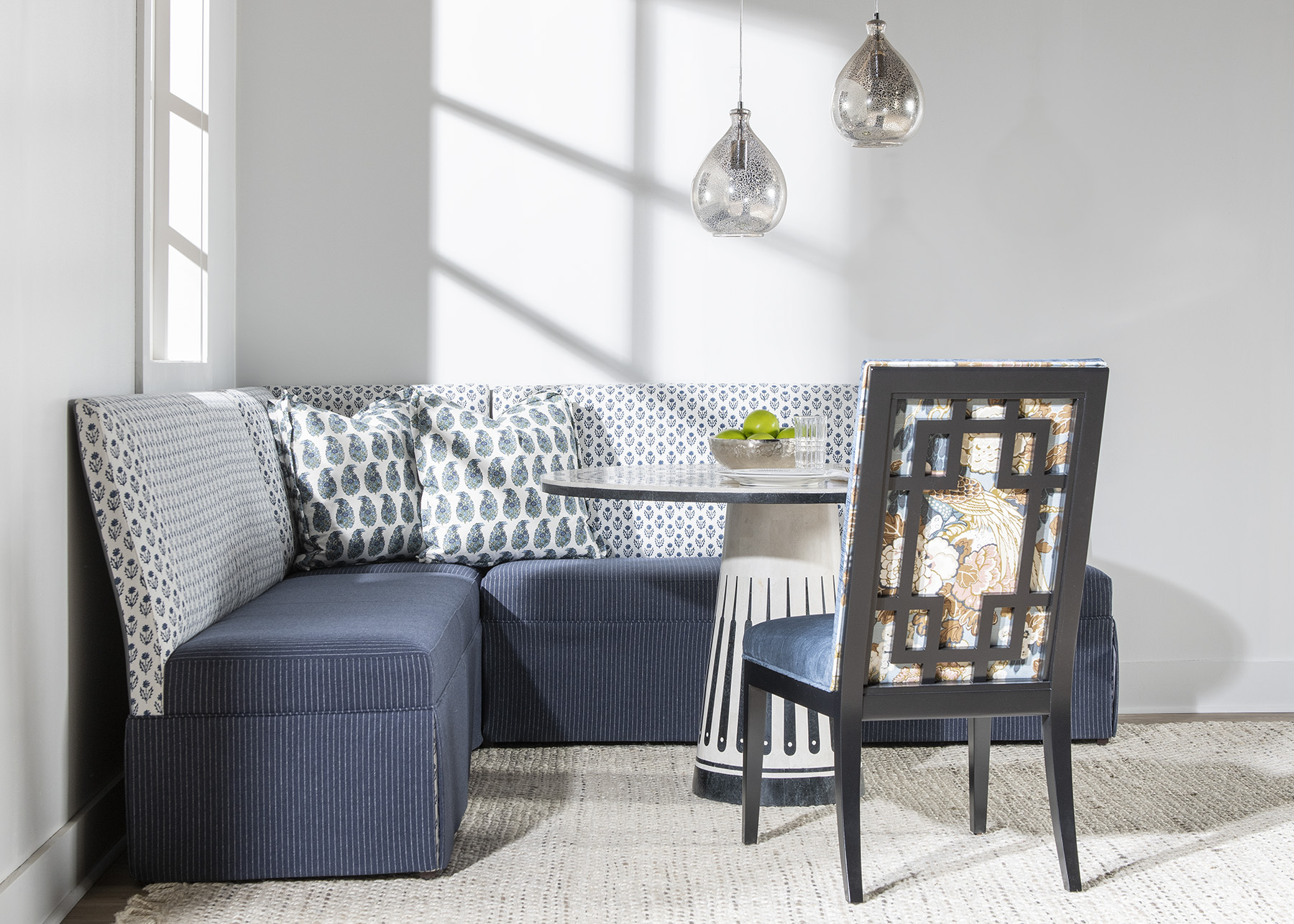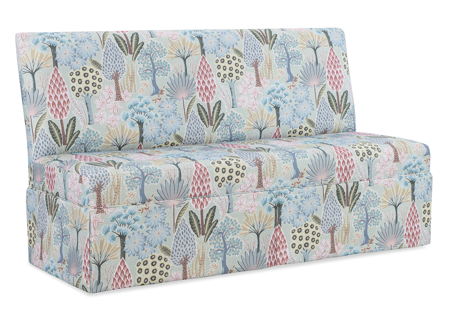 Gigi Banquette adds life to any kitchen, dining room or space where intimate gatherings are welcomed. The back can be button tufted or plain, while different skirt options make this truly customizable. Choose from Box Pleat, Dressmaker, Waterfall or Scalloped.